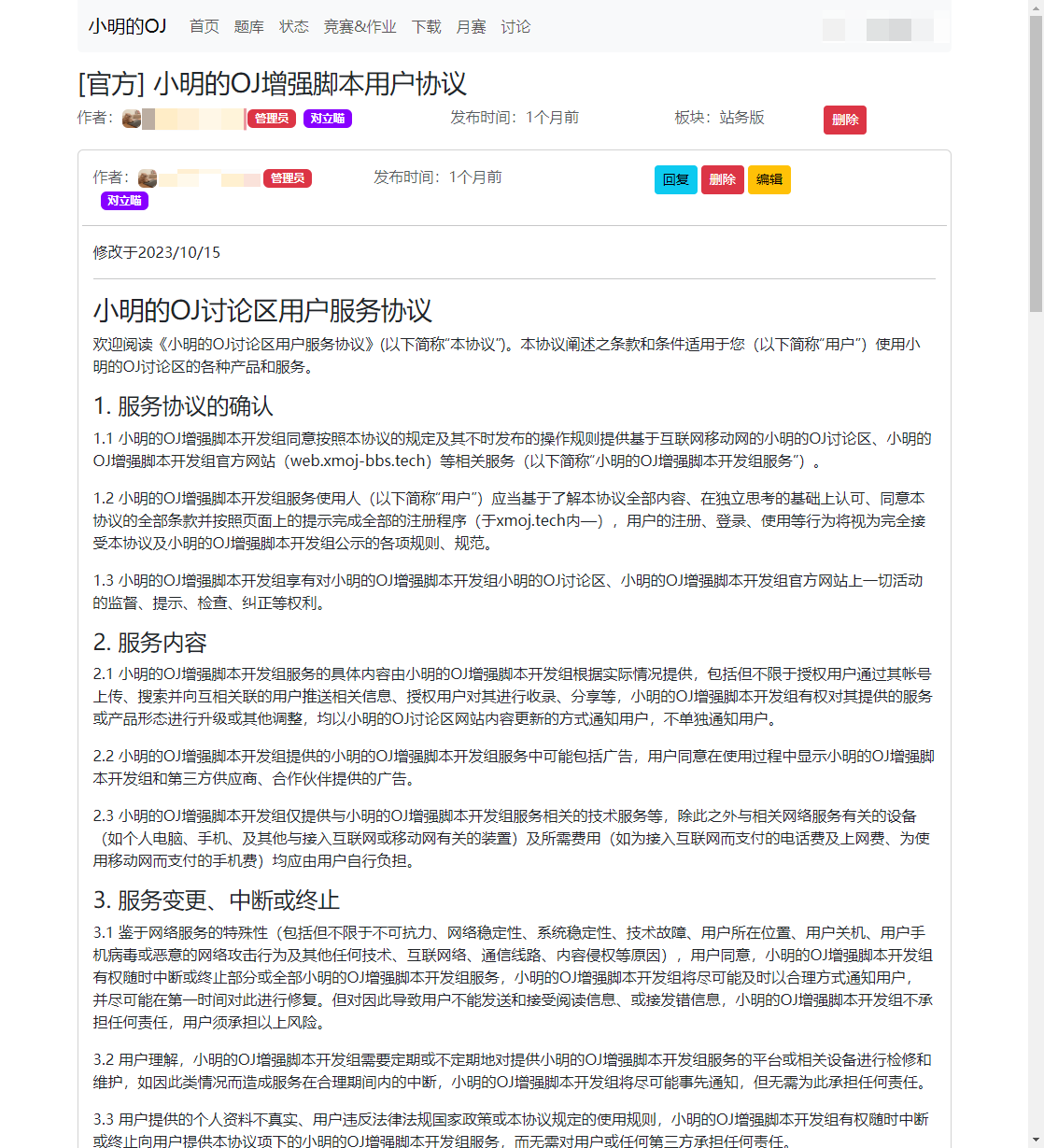 该小明的OJ增强脚本由 XMOJ-Script-dev 开发,基于 小明的OJ 平台。 该项目使用了GPL-3.0协议,请您在使用时遵守协议规定。如果您想参阅协议原文,请点击下方按钮。
