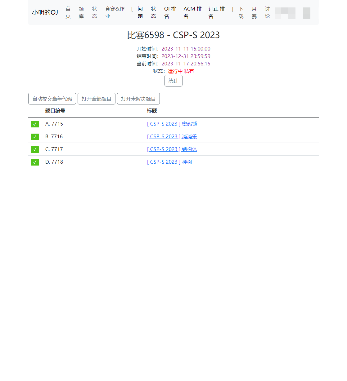 通过小明的OJ增强脚本,您将能够更便捷地参与竞赛,提高AC率,管理代码,优化学习体验,同时享受美化界面带来的愉悦感受。 无论是竞技还是学习,这个脚本都将成为您在小明的OJ平台上的得力助手。 无论您是新手还是经验丰富的竞赛选手,小明的OJ都将为您的比赛体验带来前所未有的便利和效率。 立即安装并体验吧!